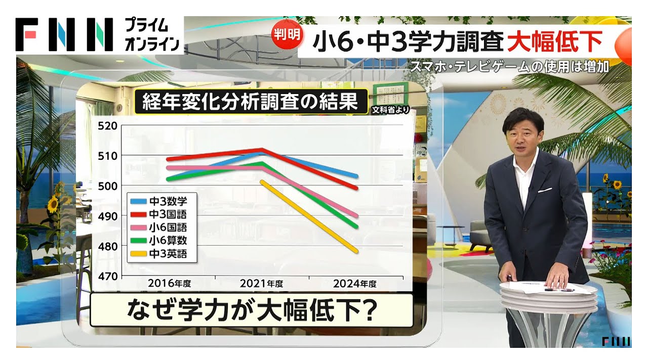 文科省が子どもの学力に関する調査結果を発表したんですが、大幅に低下しているということで驚きの結果なんですよね。