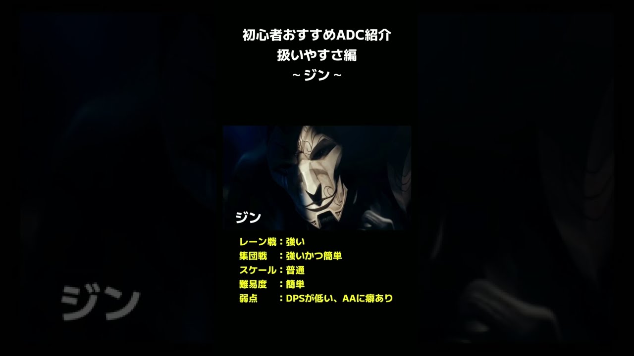 LOL 初心者おすすめADC紹介扱いやすさ編~ジン~ #shorts ゲーム Twitter Facebook Hatena Bookmark Pocket LINE Copy 2026.04.15 レーンも強くADCでありながら貴重なCC持ち! チャンネル登録、Twitterフォローお願いします! 【普段のライブ配信チャンネル】主にLOLをしてます Twitch:https://www.twitch.tv/shinsaku521 Twitter:https://twitter.com/hikari_0521